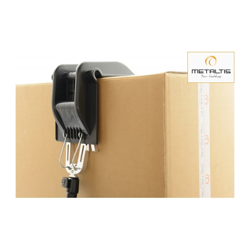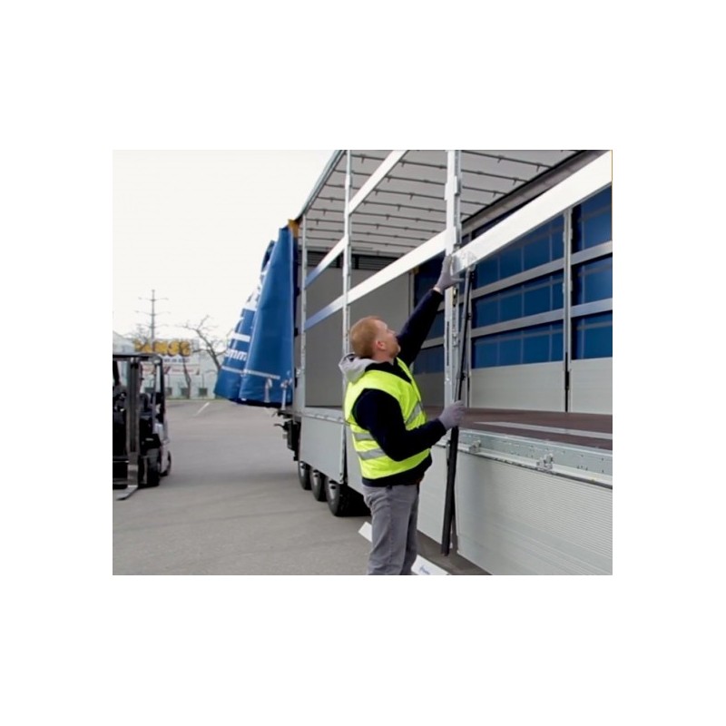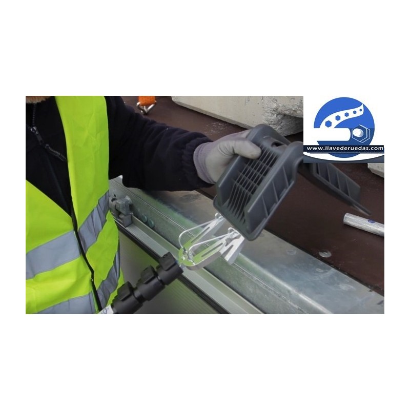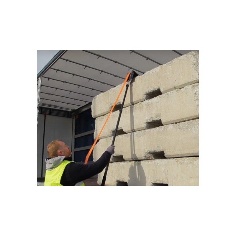El accesorio Secu Stick está diseñado especialmente para colocar ángulos de protección de manera fácil y segura, y también para quitar y reemplazar tablas laterales de madera o alluminio (vigas de carga) - sin necesidad de subir a la plataforma, ni escalar la mercancía.