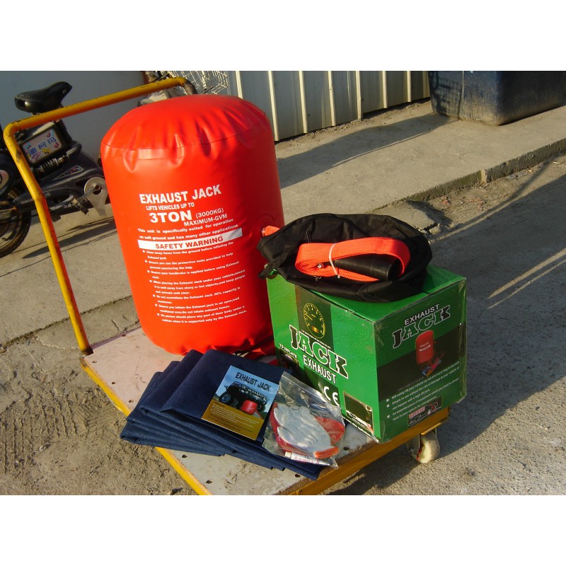 Para vehículos de hasta tres toneladas de peso, todoterrenos, furgonetas, turismos, etc. ideal para terrenos con firme irregular. Conectable al escape del propio vehículo, se hincha en pocos segundos.