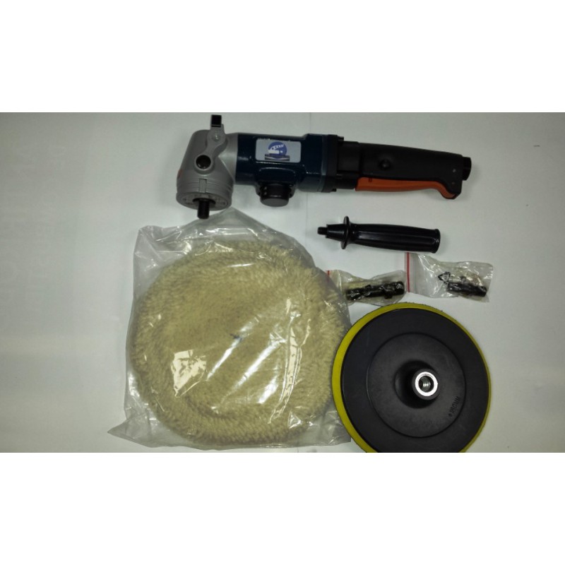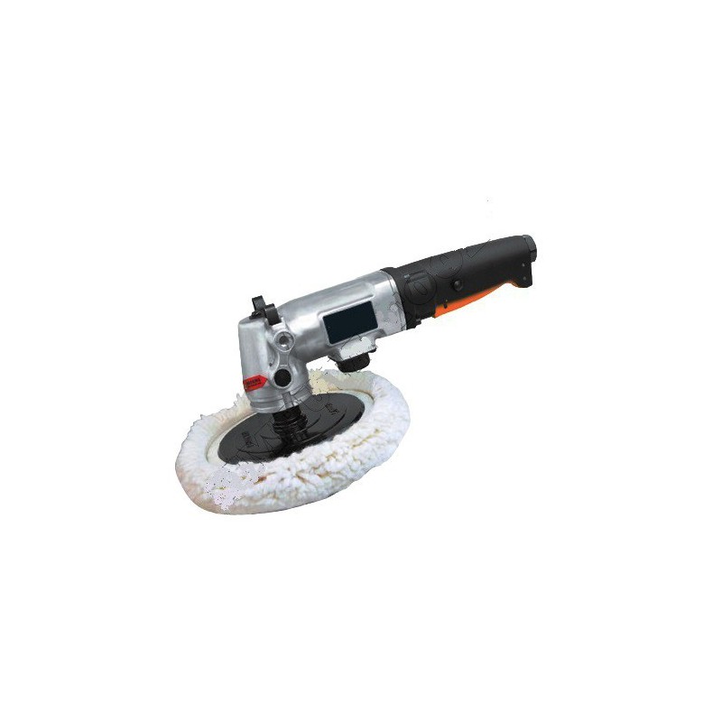 Pulidora neumática profesional con empuñadura lateral para un trabajo cómodo. 3000 rpm. plato de velcro de 7 con disco de lana incluido, consumo de aire 180 l/min. presión de aire necesaria 6 bares, entrada de aire 3/8 , peso 2, 6 kg.