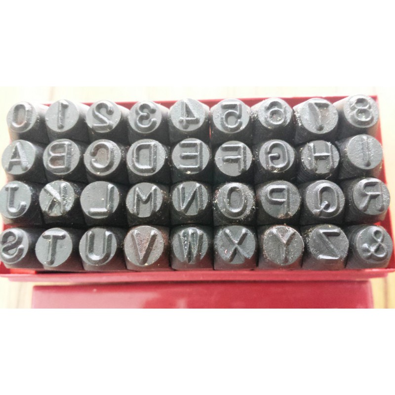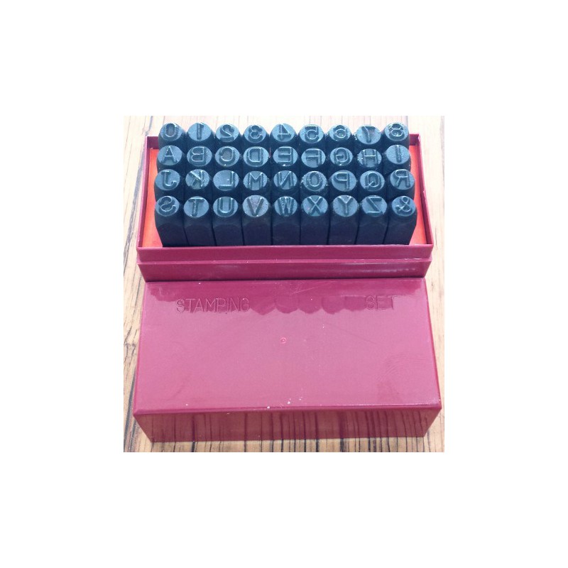 Estuche de 36 troqueles para estampado de números y letras en metal.
