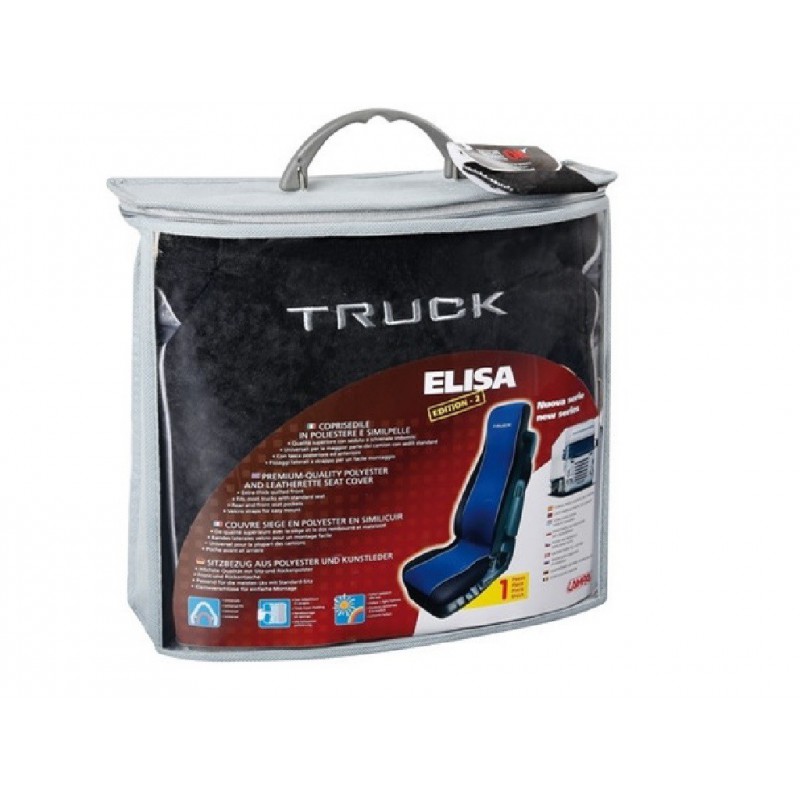 Calidad superior, con tapizado de asiento y respaldo. Universal para la mayoría de los camiones con asiento estandar. Con bolsillo delantero y trasero. Relleno acolchado para ser usado en la parte de abajo de la espalda.