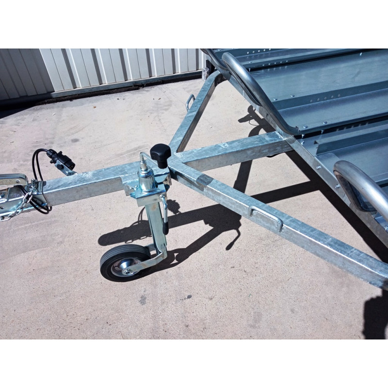 También disponible de una moto con rueda de 13" por 695 € + IVA. En opción rueda de repuesto, balancines para la rueda delantera de la moto, tapacubos, clip rápido para matrícula, cintas de amarre, etc. Entrega inmediata.